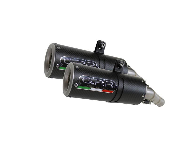 H.28.M3.CA GPR EXHAUST SYSTEM COMPATIBLE FOR HONDA VTR 1000 F Firestorm 1997/07 0 Pair of Homologated exhaust system with removable dbkiller serie M3 CARBON, MOTO 3 WORLD CHAMPION REPLICASlip-on kit with removable db killer (baffle) for racing use,it include specific link pipe, brackets, holder and fasteners. Pipe work totally stainless steel made (Aisi 304), while silencer is MATT CARBON made . Developed from GPR thanks to Moto 3 and SBK races experiences, the system has a round shape Diam.100, weight about 1,55 kg depending from motorbike of destination. GPR provide original homologation documents and instructions available as drawings or video or pictures books. If item is used in homologated configuration it doesn't require mapping, it is possible use panniers and central stand and sonda lambda boss is included when necessary. Available many sound file and pictures gallery,product is hand made in Italy, produced under European directives,it is street legal and it has 2 years of international warranty