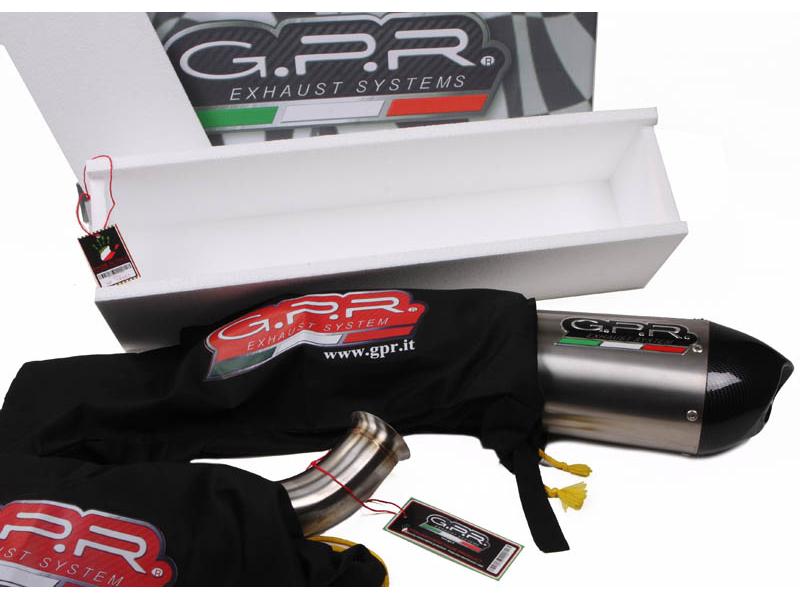 K.80.DC GPR EXHAUST SYSTEM COMPATIBLE FOR KAWASAKI Z 1000 2007/09 0 Dual homologated DEEPTONE CARBON Slip-on kit with removable db killer (baffle) for racing use,it include specific link pipe, brackets, holder and fasteners, link pipe and caps totally stainless steel made (Aisi 304) while silencer body is made by genuine carbon. Developed from GPR thanks to Moto GP and SBK races experiences, the system has a ROUND shape, Diam. 80mm, medium weight about 1,55 kg depending from motorbike of destination. GPR provide original homologation documents and instructions available as drawings or video or pictures books. If item is used in homologated configuration it doesn't require mapping, it is possible use panniers and central stand and sonda lambda boss is included when necessary. Available many sound file and pictures gallery,product is hand made in Italy, produced under European directives,it is street legal and it has 2 years of international warranty